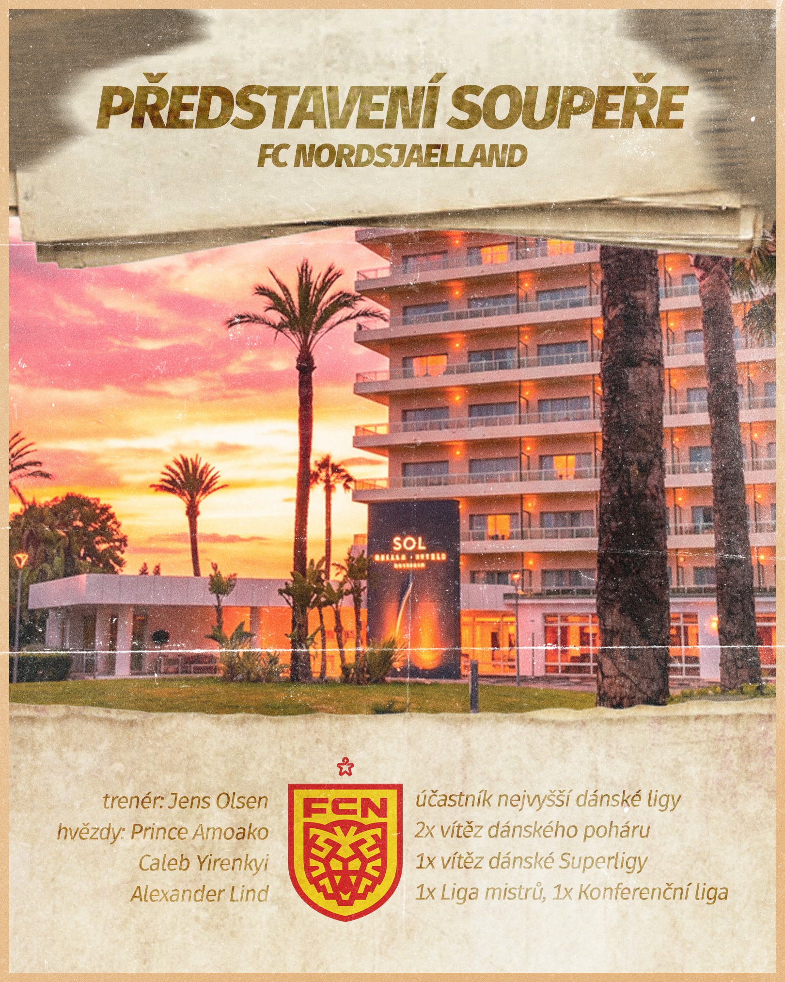 Hned první konfrontace na španělském soustředění přinese Zbrojovce pořádnou výzvu. FC Nordsjaelland se řadí mezi stabilní účastníky dánské Superligy, ačkoliv vznikl pod názvem Farum BK teprve v roce 1991 spojením dvou klubů z provincie Farum. Ve městě s populací pouhých 20 tisíc obyvatel vyrostl o osm let později stadion s kapacitou 10 300 diváků.