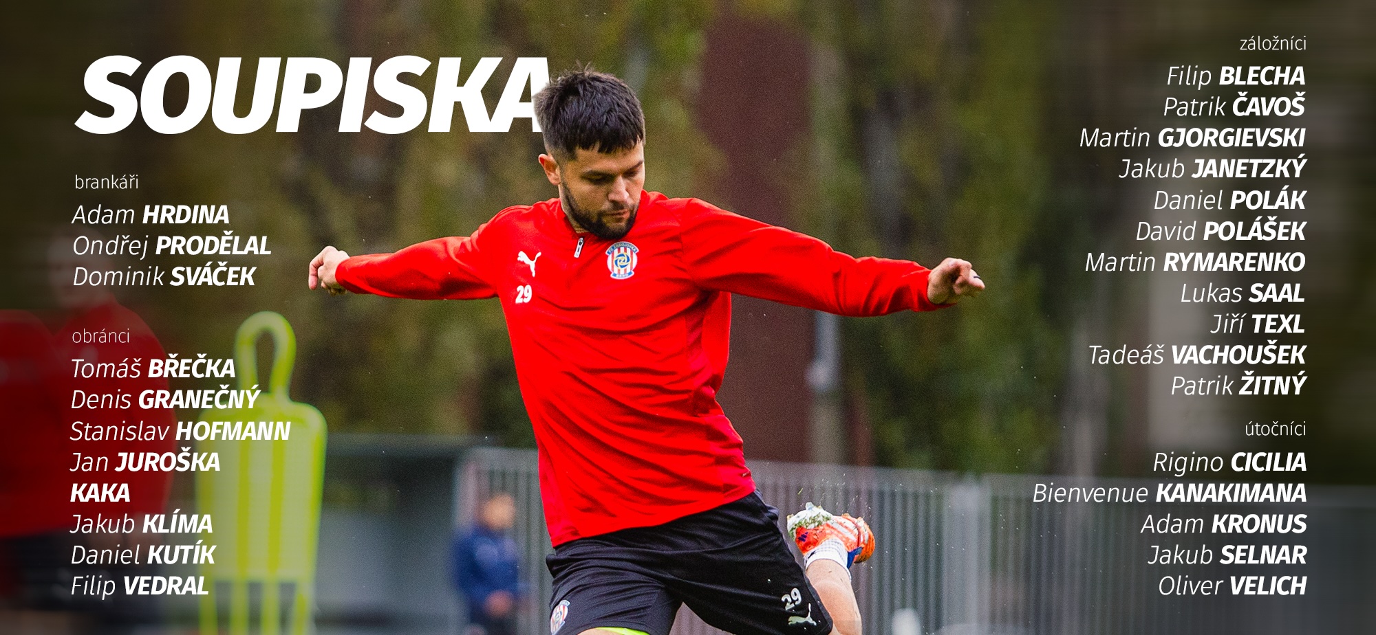 Start přípravy se týká celkem 27 hráčů. Brankářskou trojici tvoří Adam Hrdina, Dominik Sváček a Ondřej Prodělal.